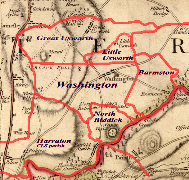 The ancient parish of Washington from Anglo-Saxon times consisted of the manors of Great and Little Usworth, Washington, Barmston and North Biddick, centred on Holy Trinity Church in Washington Village. In 1833 the satellite parish of Holy Trinity Usworth was created to include Great and Little Usworth and the physically detach North Biddick. Both churches have an attached graveyard- click the links below for records..